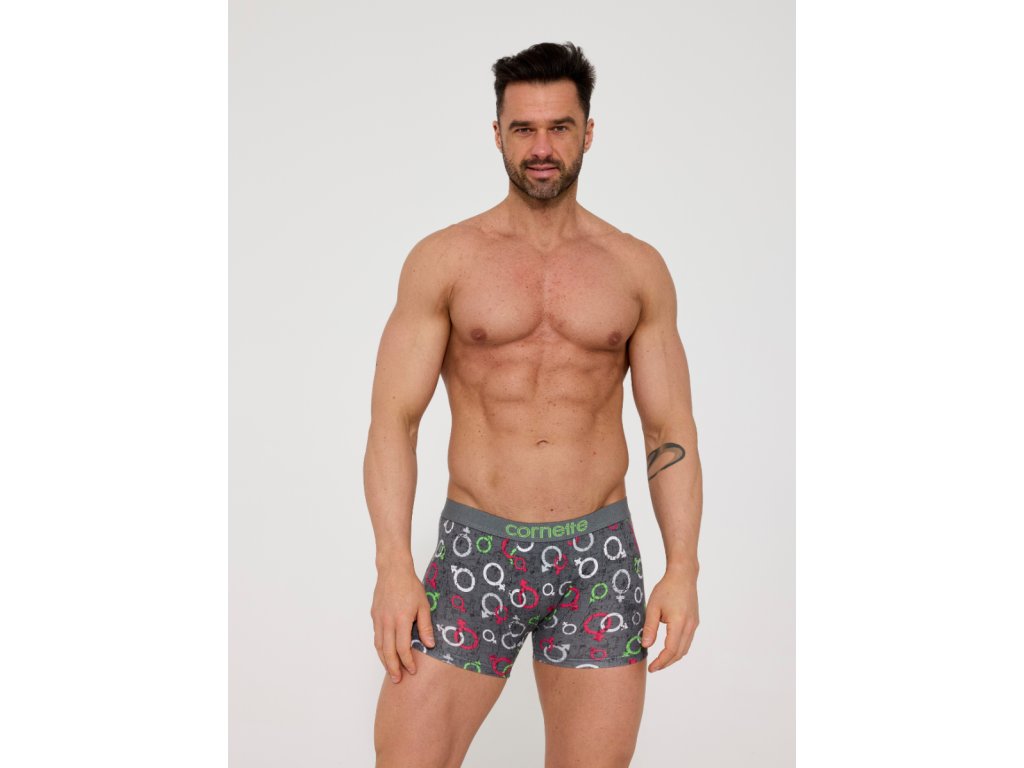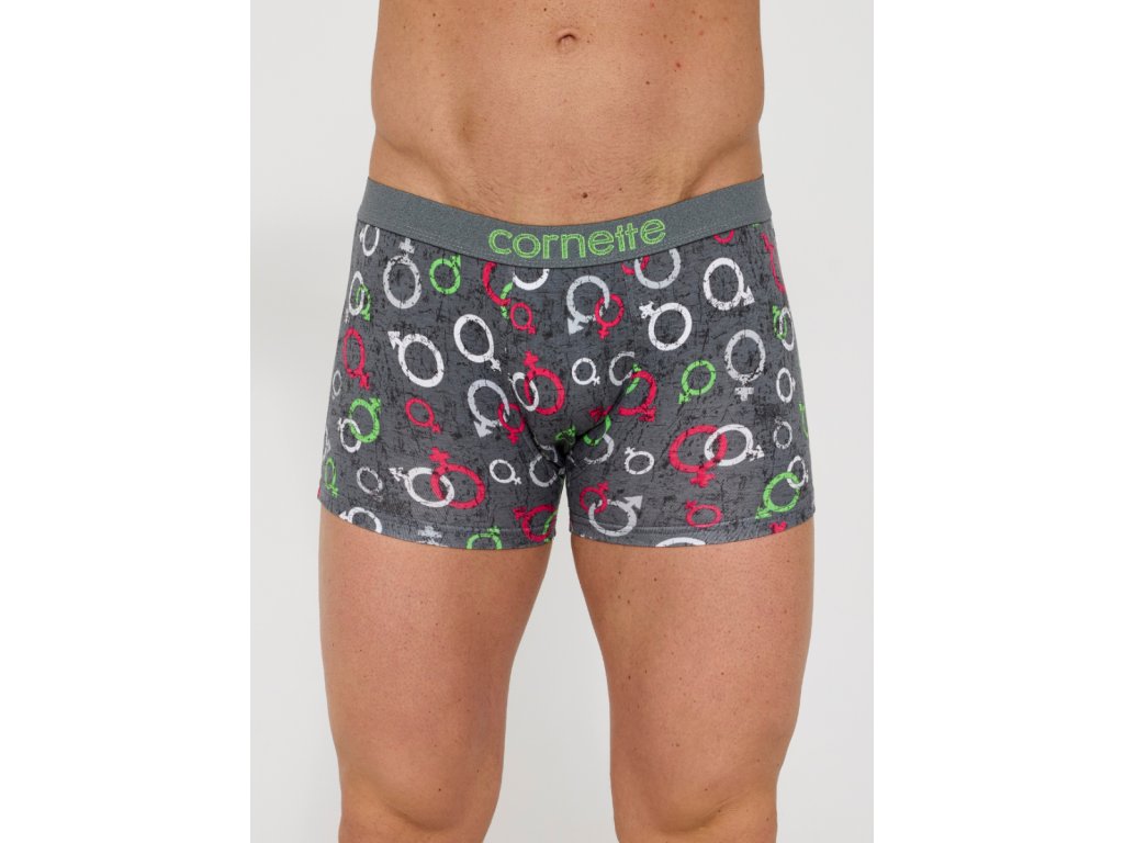 Výrobce: Cornette| Pánské boxerky značky Cornette v šedé barvě. Boxerky mají v pase širokou gumu s logem značky. Pánské spodní prádlo vyrobené z vysoce kvalitní bavlny. Boxerky jsou celoplošně potištěné barevnými znameními.