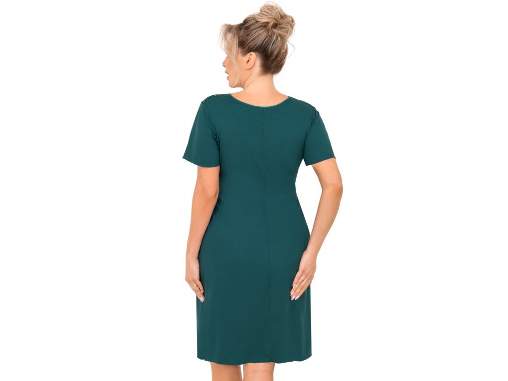 Výrobce: Donna| Dámská noční košile Melania plus v zelené barvě. Dámská noční košile má výstřih do V, který je lemovaný elegantní krajkou. Krátké rukávy jsou také lemované krajkou. Noční košile má délku cca nad kolena. Noční košile je vyrobená z příjemné a jemné viskozy.