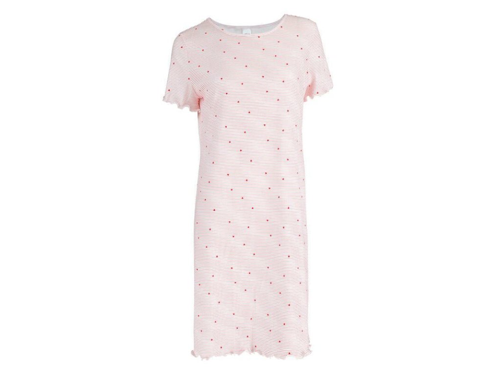 Výrobce: Pleas| Dámská noční košile značky Pleas v červené barvě. Noční košile má na červenobílém podkladu malá červená srdíčka. Dámská noční košile má krátký rukáv a kulatý výstřih. Noční košile má délku cca nad kolena. Noční košile je bavlněná. Noční košile má ozdobné lemování.