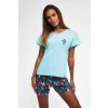 Výrobce: Donna| Elegantní krátká dámská noční košile od firmy Donna Melania v modré barvě. Výstřih a rukávky jsou krajkové s květinovou výšivkou. Výšivka uzavírá okraj krajky a vytváří jemně vlnovku kolem výstřihu, který je do V. Noční košile má délku nad kolena.