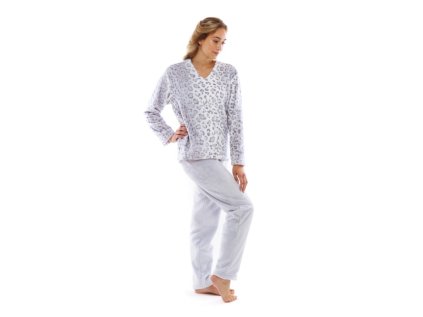 Dámské pyžamo či domací obek| Výrobce: Vestis| Dámské teplé, elegantní, příjemné a jemné pyžamo od firmy Vestis šedé Irbis. Pyžamo má triko s dlouhým rukávem a střihem do V. Triko má potisk s motivem kožešiny sněžného leoparda. Kalhoty jsou jednobarevné šedé a rovné. Pyžamo je vhodné také jako domácí oblečení. jemný příjemně hřejivý flannel fleece s krátkým hustým vlasem zajistí příjemný tepelný komfort materiál je hebký na omak, má krásný lesk a lehce splývá pohodlný střih kalhot v pase s gumou ležérní mikina s výstřihem do V kombinace vzorovaného a hladkého materiálu vytváří...