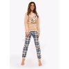 Výrobce: Cornette| Dámské pyžamo značky Cornette v smetanové barvě. Dámské pyžamo má triko s dlouhým rukávem a veselým obrázkem rodiny medvídků. Pyžamo je ukončeno do manžet. Kalhoty jsou kostkované modrobílé.