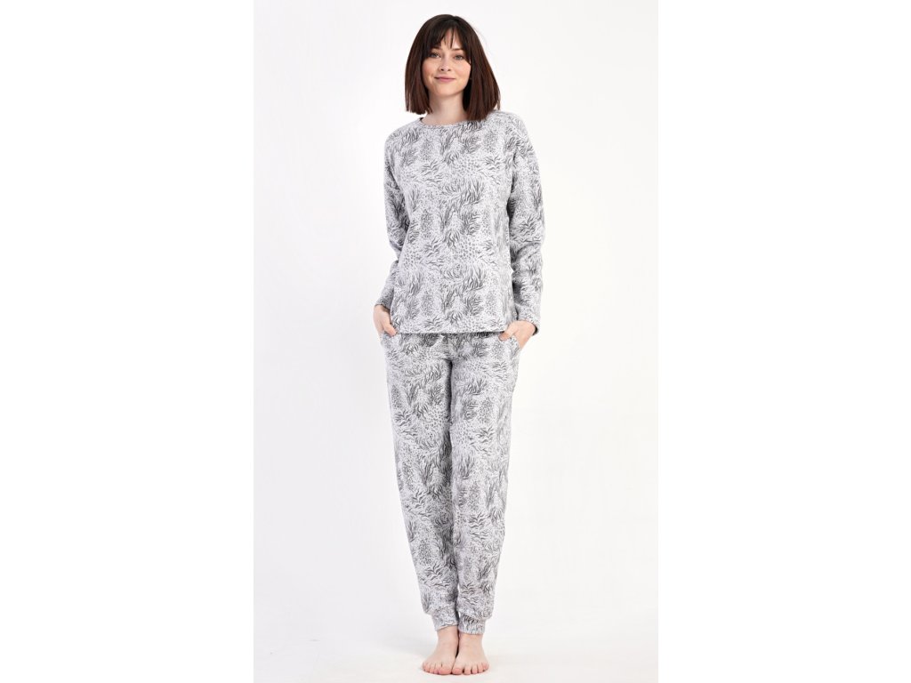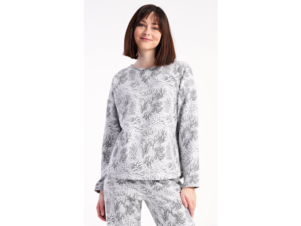 Výrobce: Vienetta Secret| Dámské dlouhé pyžamo Sofia v šedé barvě. Dámské pyžamo se skládá z trika s dlouhým rukávem a dlouhých kalhot. Triko s kulatým výstřihem je ozvláštněno abstraktním vzorem. Kalhoty mají v pase gumu, šňůrku na stažení a praktické kapsy. Jsou zakončené lemy. Použitý materiál je poddajný a příjemný na dotek. Pyžamo je teplejší.