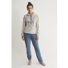 Výrobce: Promise| Dámské dlouhé propínací pyžamo značky Promise v žlutomodré barvě. Dámská dlouhé pyžamo má kostkované triko se zipem a nápisem. Kalhoty jsou rovné modré. Pyžamo je teplé a vhodné také jako domácí oblečení.