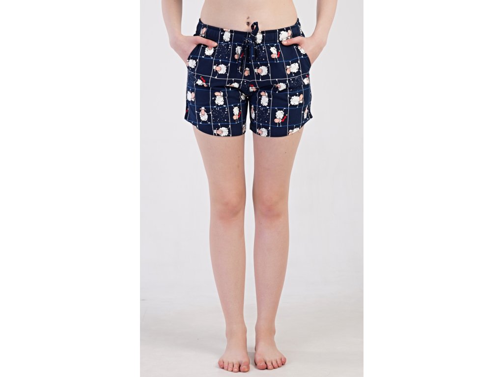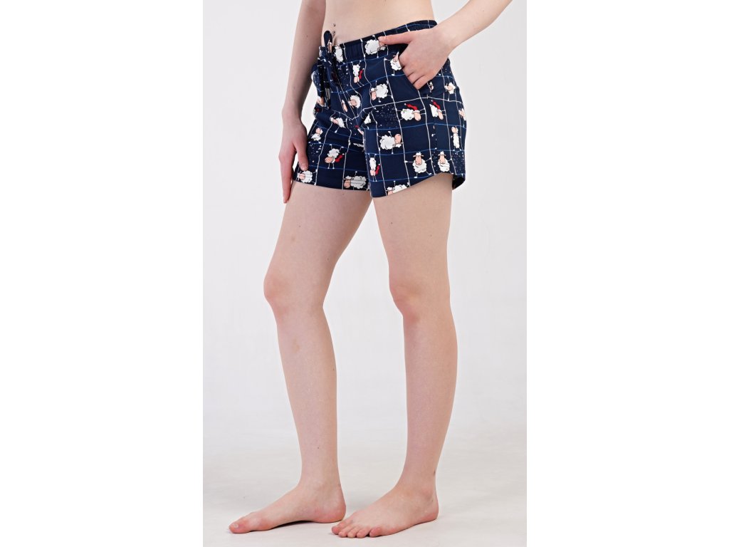 Výrobce: Vienetta Secret| Dámské bavlněné samostatné pyžamové šortky Ovečky v tmavě modré barvě. Pyžamové krátké kalhoty jsou zdobeny potiskem oveček. Mají v pase gumu, šňůrku na stažení a praktické kapsy. Použitý bavlněný materiál je příjemný a poddajný na dotek.