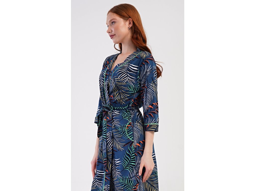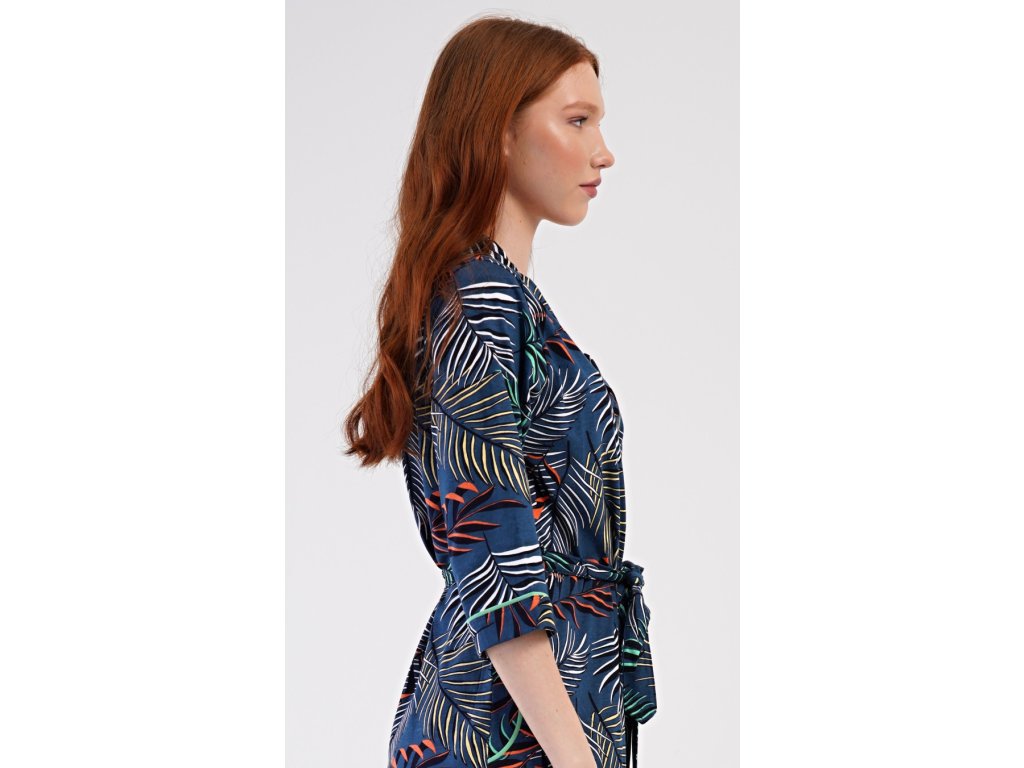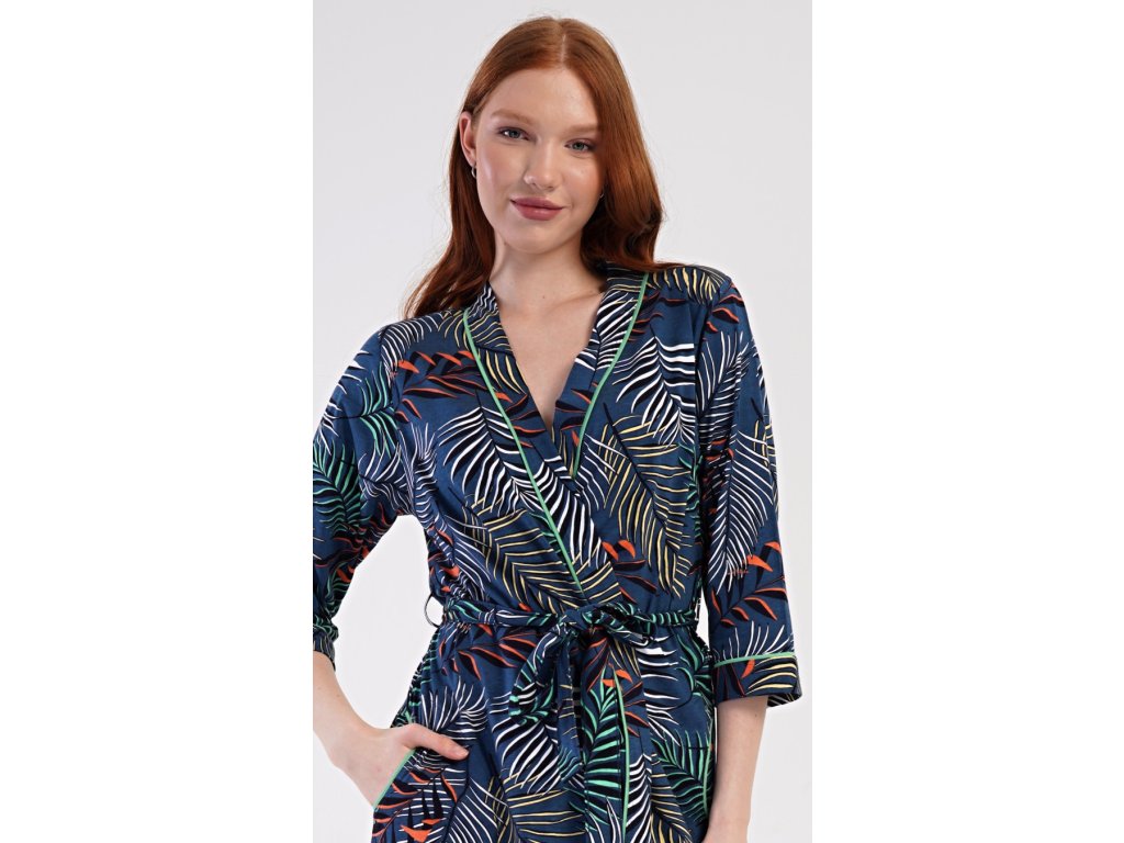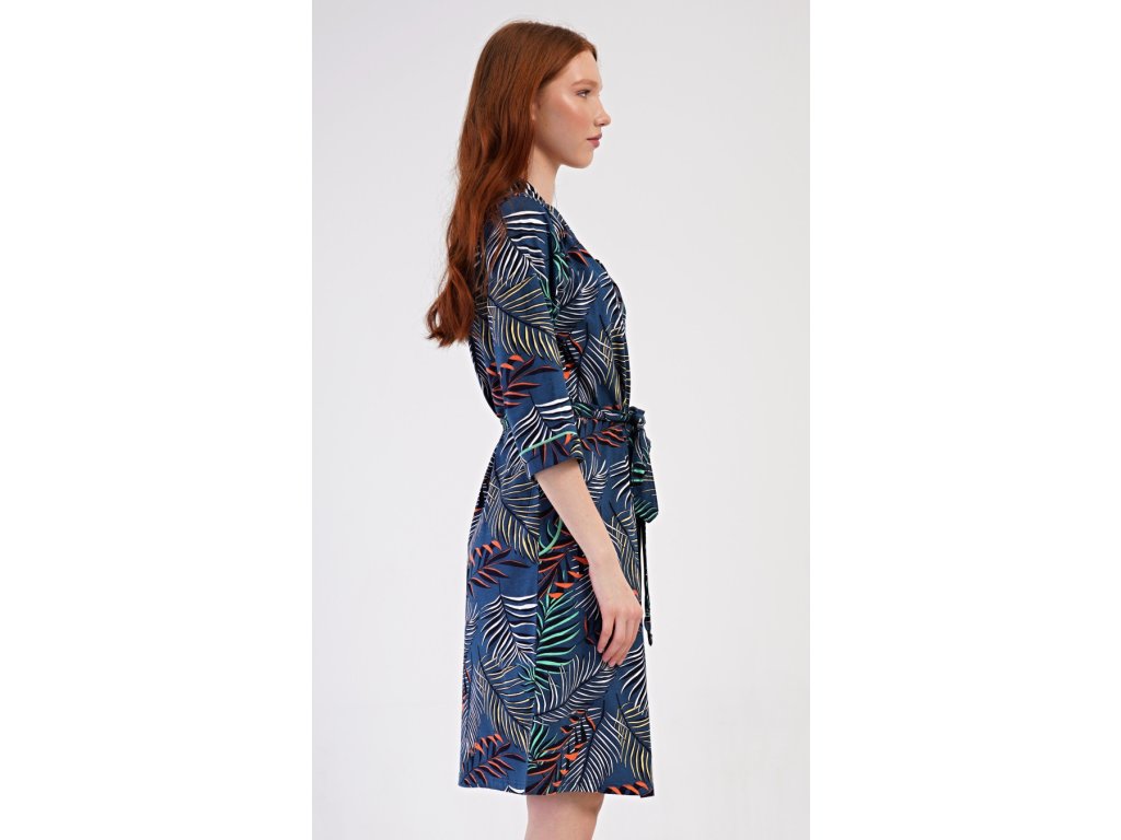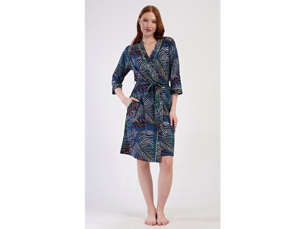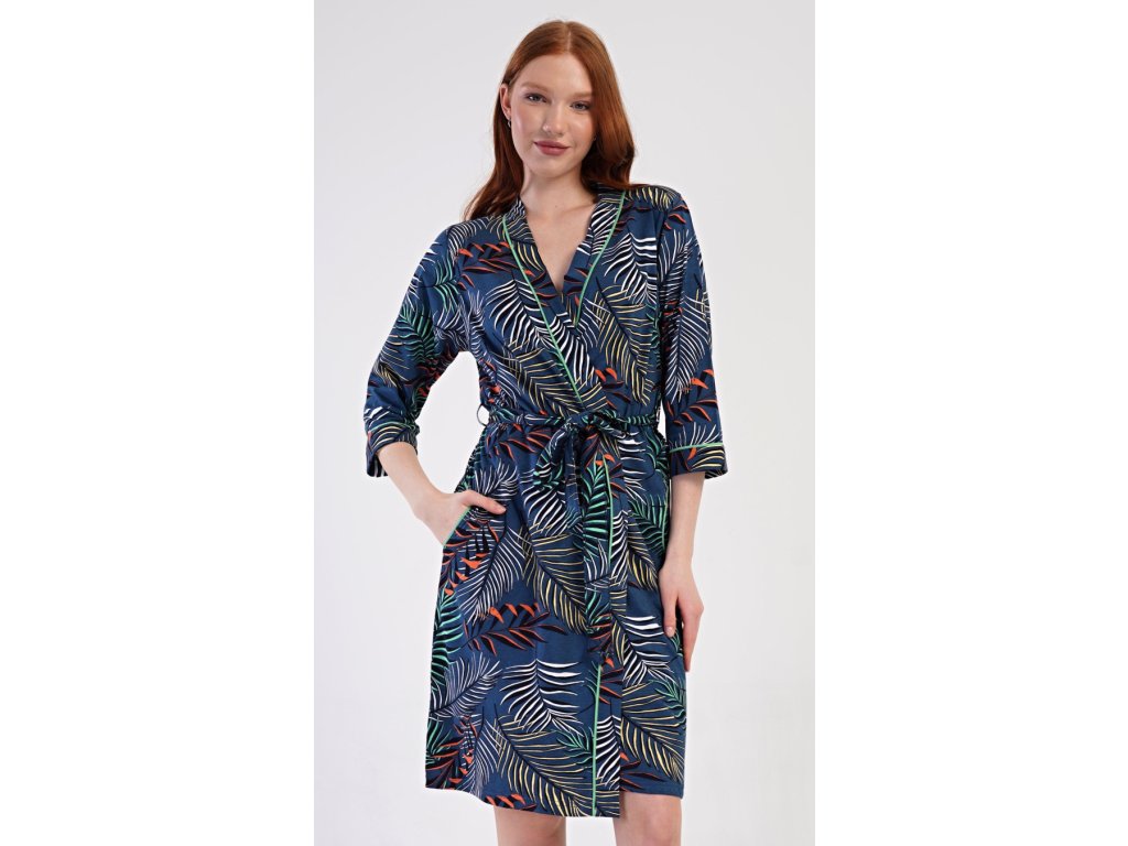 Výrobce: Vienetta Secret| Dámský krátký bavlněný župan Barbara v tmavě modré barvě. Dámský župan v délce pod kolena má celopotisk s pestrobarevnými listy a větvičkami. Župan má pásek ke stažení a praktické kapsy. Použitý bavlněný materiál je příjemný a poddajný na dotek, saje a oceníte ho i po koupeli.