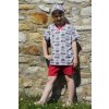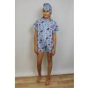Výrobce: Rozárka| Dětský overal na spaní krátký značky Rozárka v modré barvě. Overal má krátký rukáv, krátké nohavice, kulatý výstřih a rozepínání na knoflíky. Overal je zdoben obrázky různých aut. K overalu je čepička. | Nejnižší cena během 30 dnů před slevou: 490 Kč