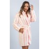 Výrobce: Vienetta Secret| Dámský župan krátký Alice v lososové barvě. Dámský pruhovaný župan s kapsami a páskem ke stažení má hřejivý šálový límec. Na zádech županu je nápis I want to Kiss you a lot s roztomilou kočičkou. Použitý materiál je jemný a poddajný na dotek. Župan je vhodný na denní nošení.