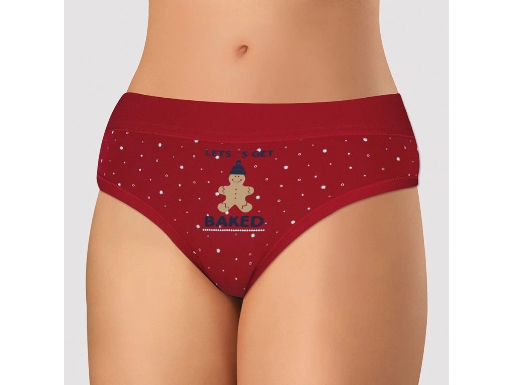 Výrobce: Andrie| Dámské bokové kalhotky Andrie PS 1081 se sníženým pasem. Kalhotky jsou vyrobeny z velmi kvalitní elastické bavlny. Materiál se skvěle přizpůsobí postavě a drží stálý tvar prádla. Díky širokému lemu v pase ideálně přiléhají k tělu a jsou velmi pohodlné. Komfortní lem okolo nohou zaručuje, že se kalhotky nezařezávají do stehen. Kalhotky mají bavlněný klínek. Kalhotky jsou ve vínové barvě a mají obrázek perníčku.