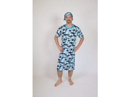 Výrobce: Rozárka| Košile noční pánská značky Rozárka v tyrkysové barvě. Noční košile má krátký rukáv. Pánská noční košile je s výstřihem do V. Noční košile má fotbalový vzor. K noční košili je čepička se stejným motivem.