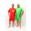 Výrobce: Rozárka| Overal na spaní s čepičkou značky Rozárka v zelené barvě. Overal má krátký rukáv, krátké nohavice, kulatý výstřih a rozepínání na knoflíky. Na overalu je obrázek Tygra a nápis Mám oči jen pro Tebe. K overalu je dodávána čepička s bambulkou.