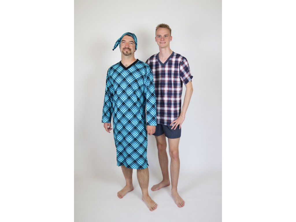 Pánská noční košile P40 Rozárka kostka tyrkysová