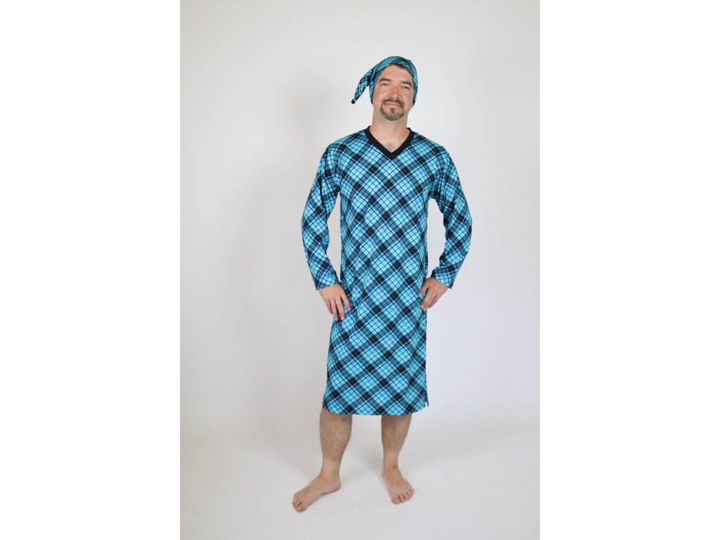 Výrobce: Rozárka| Pánská noční košile značky Rozárka v tyrkysové barvě. Noční košile má výstřih do V a dlouhý rukáv. Noční košile má tyrkysový kostkovaný vzor.
