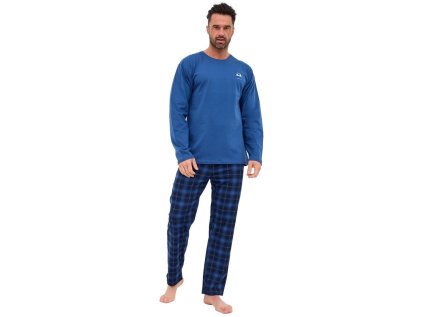 Výrobce: Cornette| Pánské pyžamo značky Cornette v tmavě modré barvě. Pánské pyžamo má triko s kulatým výstřihem a malým obrázkem na přední části. Kalhoty jsou kostkované rovné. Kalhoty jsou kostkované v tmavší modré barvě.