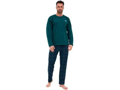 Výrobce: Cornette| Pánské pyžamo značky Cornette v zelené barvě. Pánské pyžamo má jednobarevný vršek s kapsičkou. Výstřih je lemovaný a do V. Kalhoty jsou kostkované v zelených odstínech.