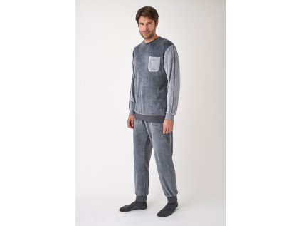Pánské dlouhé teplé pyžamo| Výrobce: Promise| Pánské pyžamo značky Promise v šedé barvě. Pánské pyžamo má kulatý výstřih. Triko pyžama je v šedé barvě v kombinaci světlá a tmavě šedá barva. Triko má kapičku. Pyžamové kalhoty mají dvě kapsy. Pyžamo je ukončeno do manžet. Pyžamo je vhodné také jako domácí oblečení.