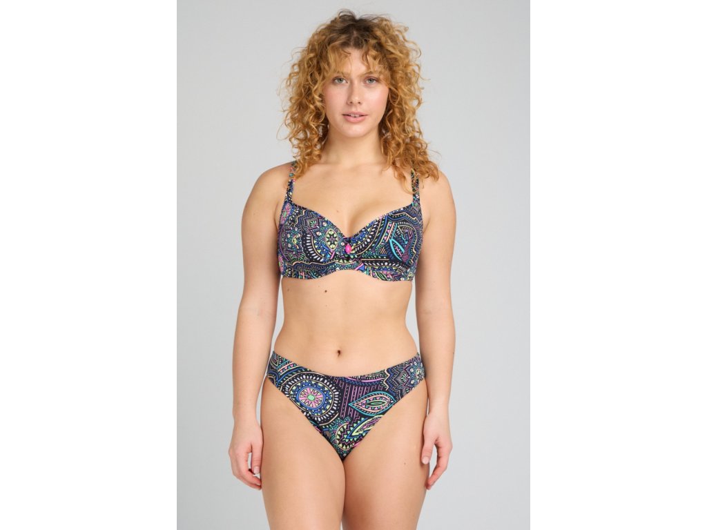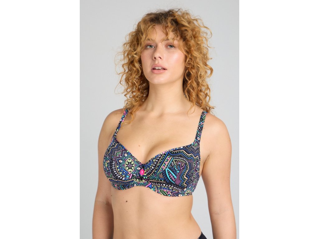 Výrobce: Triola| Tence vyztužená plavková podprsenka od firmy Triola s kosticemi ve střihu T-Fit poprsí pevně zafixuje a zajistí přirozeně kulatý tvar. Plavková podprsenka zaujme barevným vzorem. Plavková podprsenka je z kolekce Iris. K plavkové podprsence lze pořídit ve stejném provedení plavkové klasické kalhotky či vyšší kalhotky s nastavitelnou výškou pasu. Plavková podprsenka zajistí svůdný a přirozeně kulatý dekolt. Plavková podprsenka má posunovací ramínka.