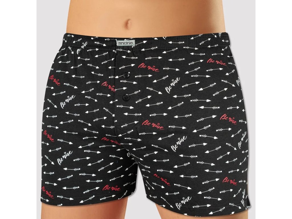 Výrobce: Andrie| Pánské trenkoslipy značky Andrie vzor PS 5951 v černé barvě s Valentýnským motivem. Trenky mají klasický střih se dvěma knoflíčky a po stranách rozparky. Trenkoslipy jsou v černé barvě a mají potisk šípů lásky a Be mine.