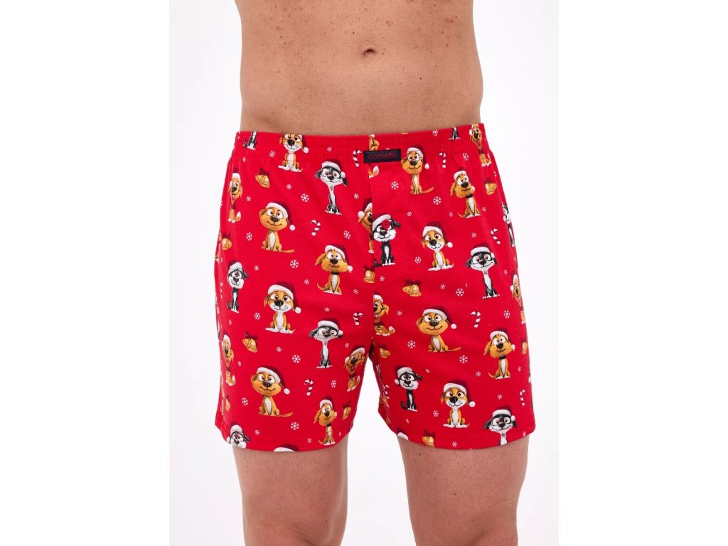 Výrobce: Cornette| Pánské vánoční trenkoslipy značky Cornette v červené barvě. Trenkoslipy jsou klasického střihu. Trenky jsou s celopotiskem pejsků s vánoční čepičkou.