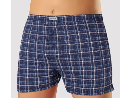 Výrobce: Andrie| Pánské trenkoslipy značky Andrie vzor PS 5920 v modré barvě. Trenkoslipy mají klasický střih se dvěma knoflíčky a po stranách rozparky. Trenkoslipy jsou v tmavě modré barvě s kostkovaným vzorem v modré barvě.